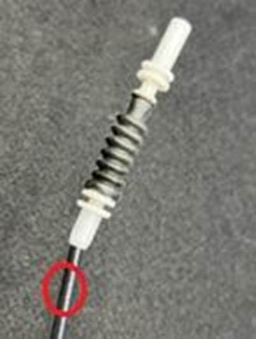 動画8:室内側レバーからのケーブル連結部。(内視鏡から画像4の赤丸部分)なにか切れているような症状は特になし。これは正常。