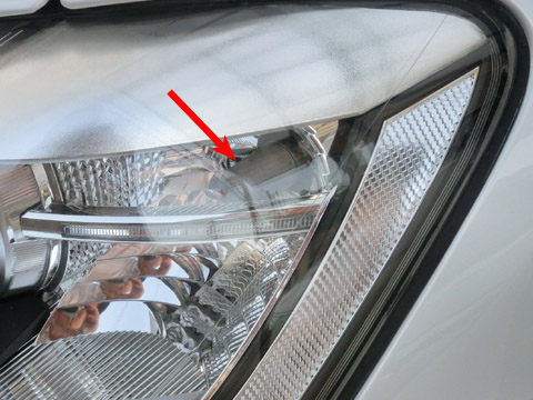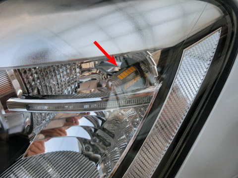 写真3 シルバーのLED球これをフロントウィンカーとして入れてみると、写真4のように交換前ではLEDの黄色い粒が見えていたものが、写真5のように全く見えなくなっている。