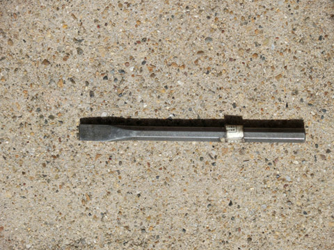 写真9 潤滑スプレーを吹いているところその後、写真10のようにタガネをハンマーで打ち込む。