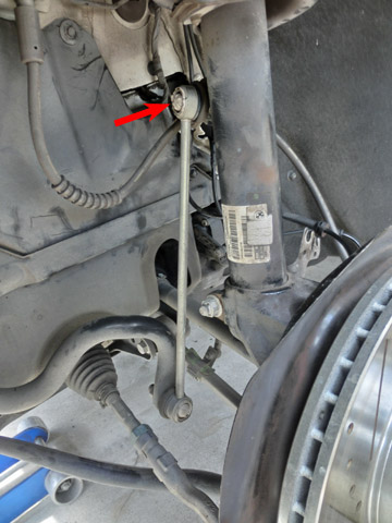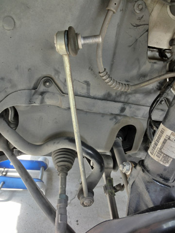 写真4 ケーブルを外す場所(3)そして、写真5のスタビリンクの上側を外す。