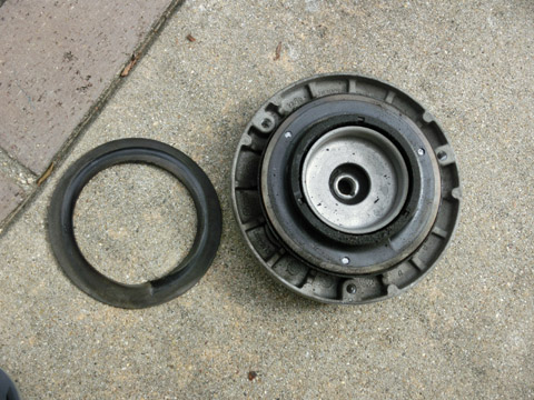 写真33 バンプラバーただ、写真34のサポートベアリング(アッパーマウント)とアッパースプリングパッドはまだ使えそうだ。
