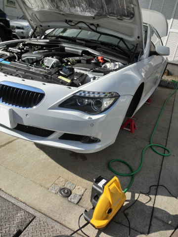 DD2号(E63)はtake-Mさんで車検を受けていた時には、車検のときにエンジンルームを高圧洗浄機で洗浄してもらっていた。しかし、take-Mさんが閉業してしまったのでエンジンルームは自分で洗浄しないといけない。先日、DD3号(F25)のエンジンルームを高圧洗浄機で洗浄したことを報告したが、今回は車検前にDD2号(E63)のエンジンルームを洗浄したので報告しよう。