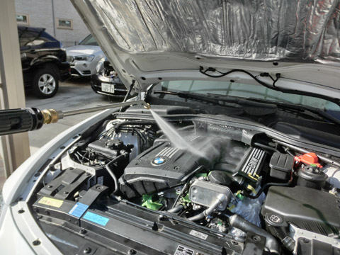DD2号(E63) エンジンルームの洗浄 − 高圧洗浄機で