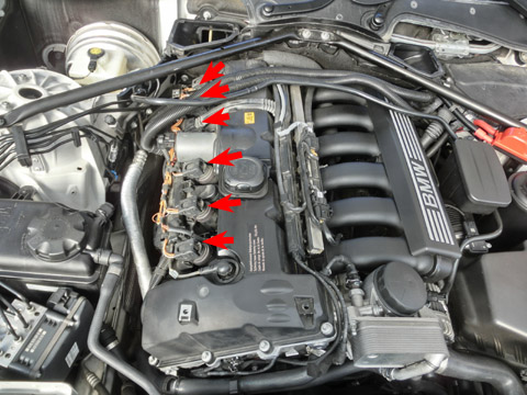 写真13 プラグを取り付けているところさて、プラグ洗浄後にしばらく車を走らせてみたが、信号待ちで留まっているときなど、アイドリング時にたまに1気筒だけ一瞬失火するときがある。すぐに回転はスムーズに戻るのだが、ちょっと気になる。それになんか排気ガスが生ガス臭いし燃費もあまりよくない。イグニッションコイルの被覆が剥げてきいるものもあるし、そろそろイグニッションコイルの寿命なのか・・・?