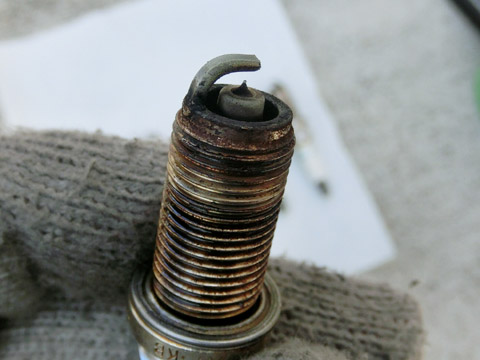 写真7 外したプラグ外したプラグの先の部分は写真8のように煤が付いている。